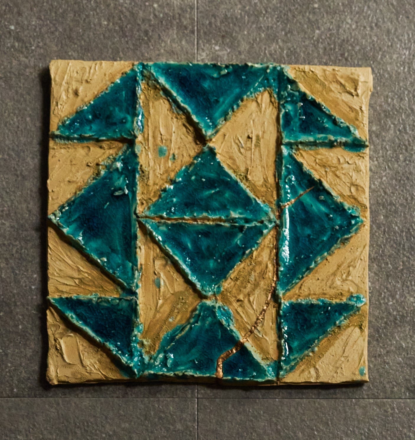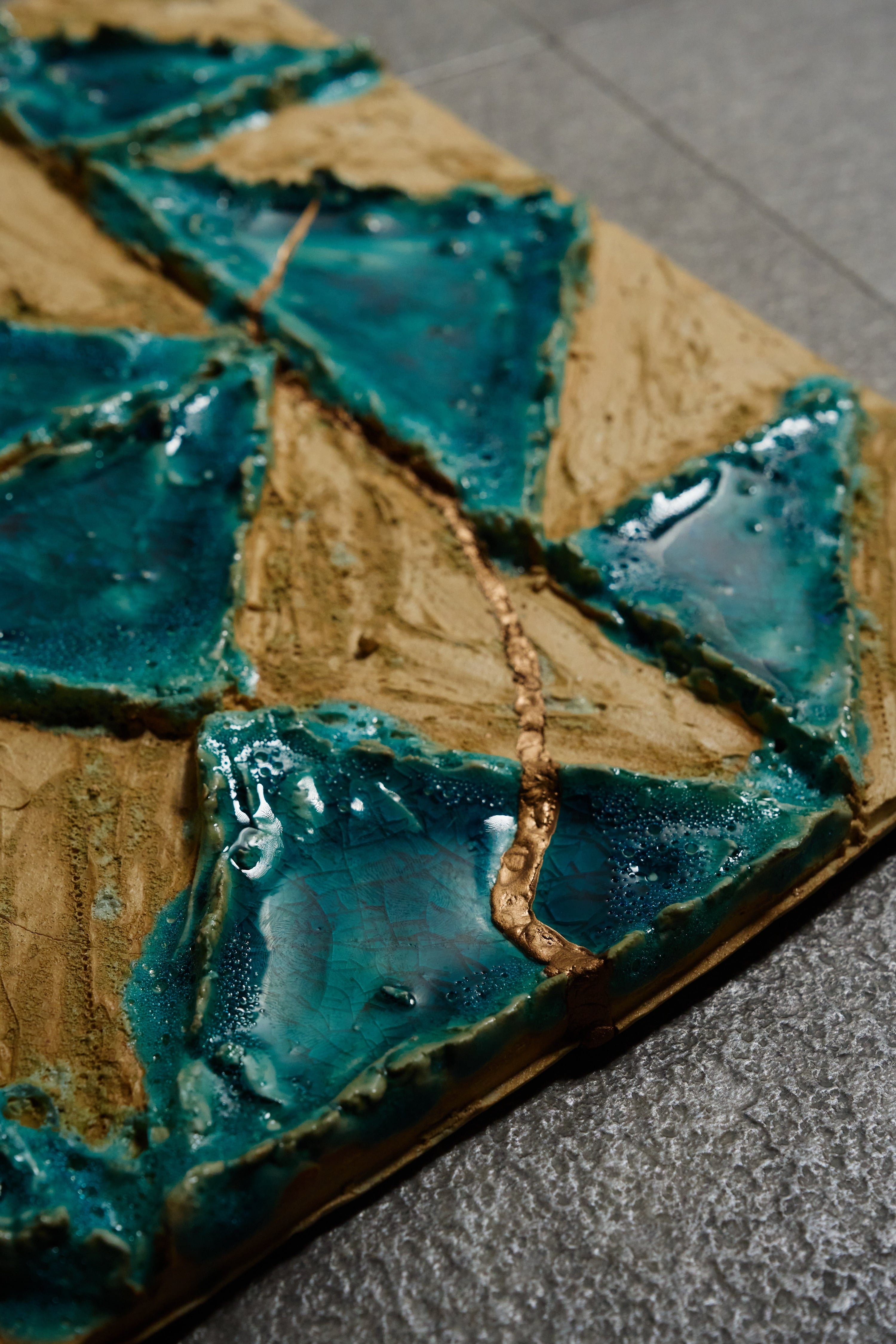 ひとつひとつの面が光を受けて変化し、見る角度によって、海面のように異なる表情を見せます。