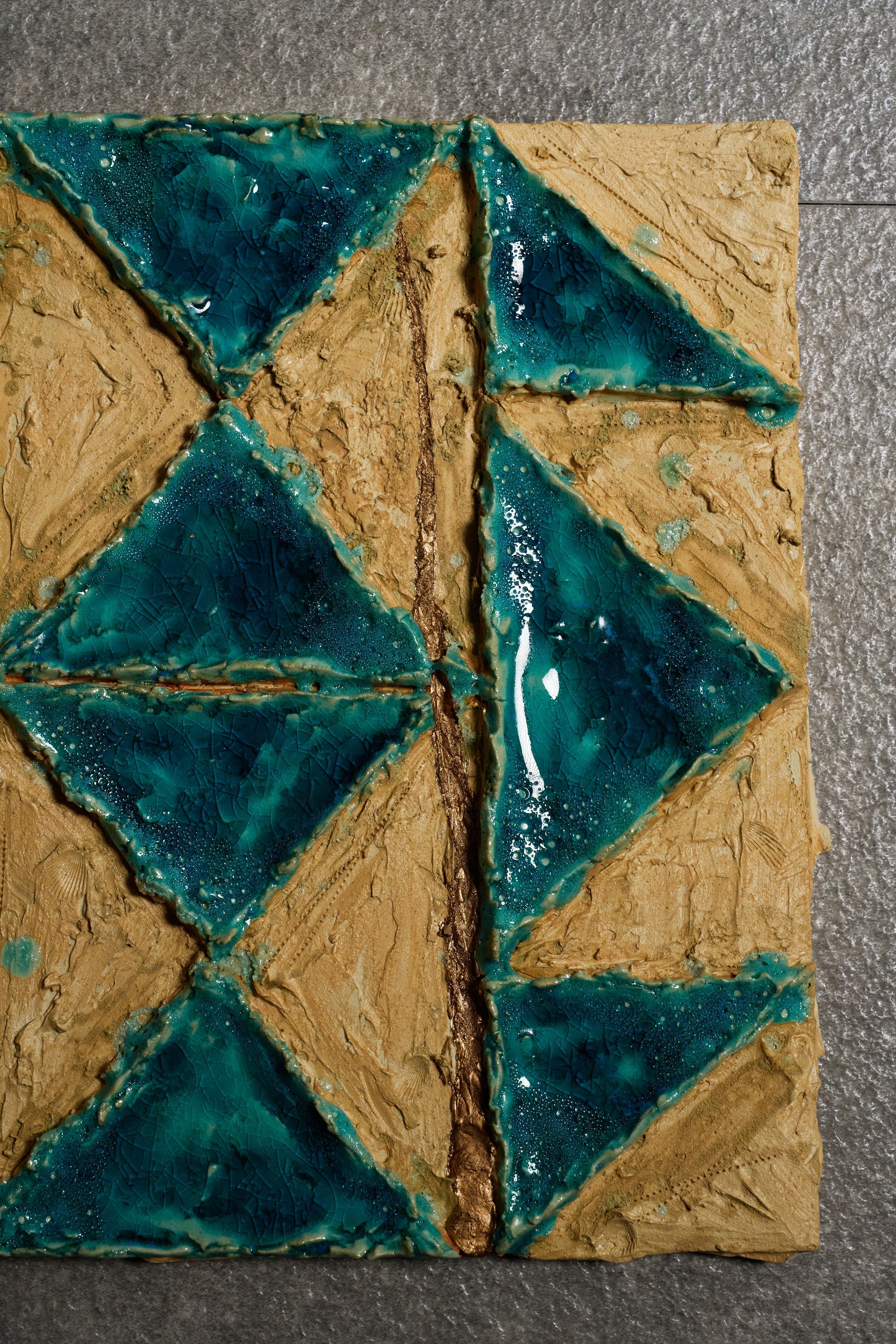 深い青の釉薬と荒々しい土肌の対比が、光や視点の変化によって豊かな表情を生み出します。近くで見れば質感の細やかさが際立ち、少し離れて眺めると、まるで海を遠くから見渡すような感覚が広がります。空間に自然の気配と静かな余韻を添えてくれる一点です。