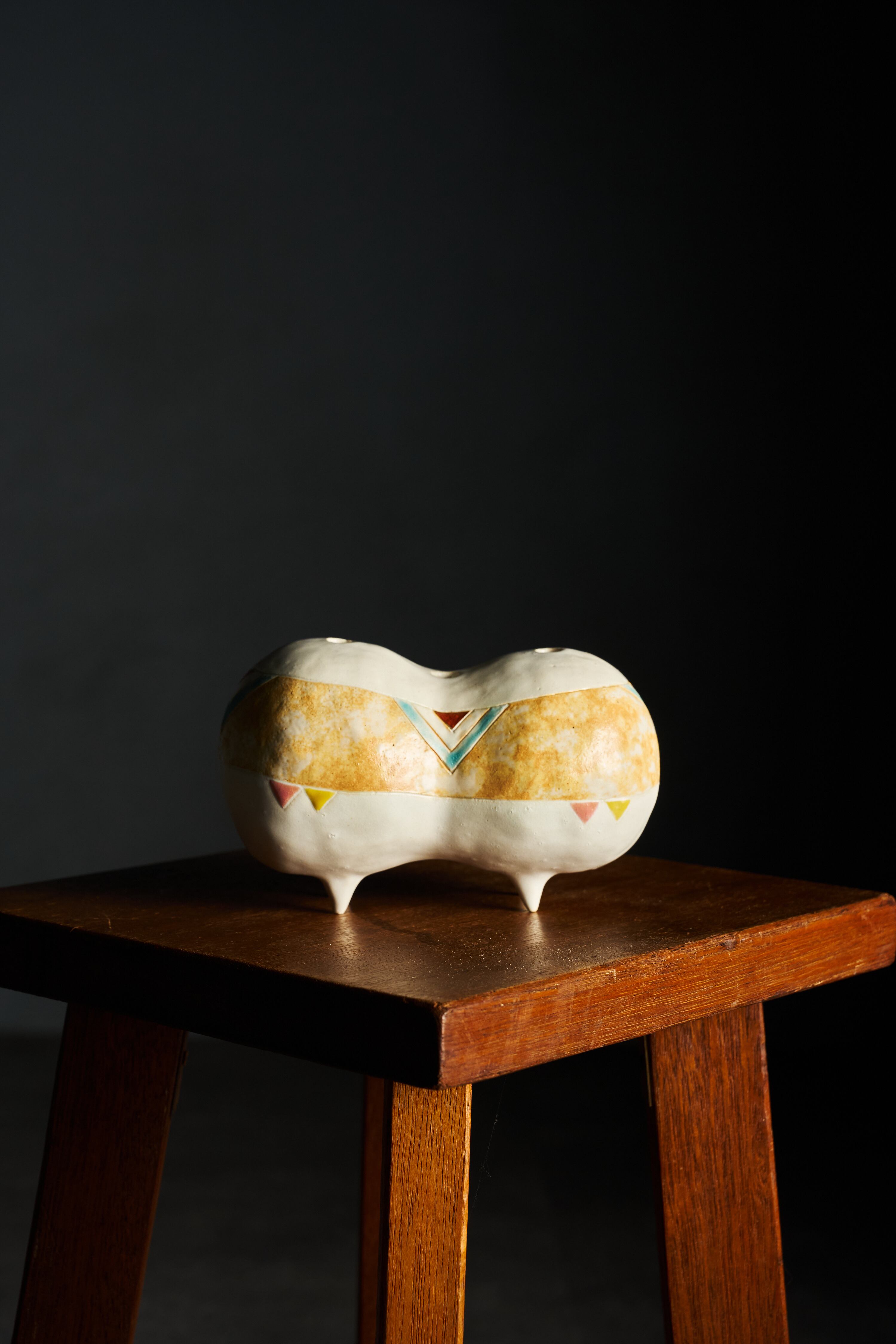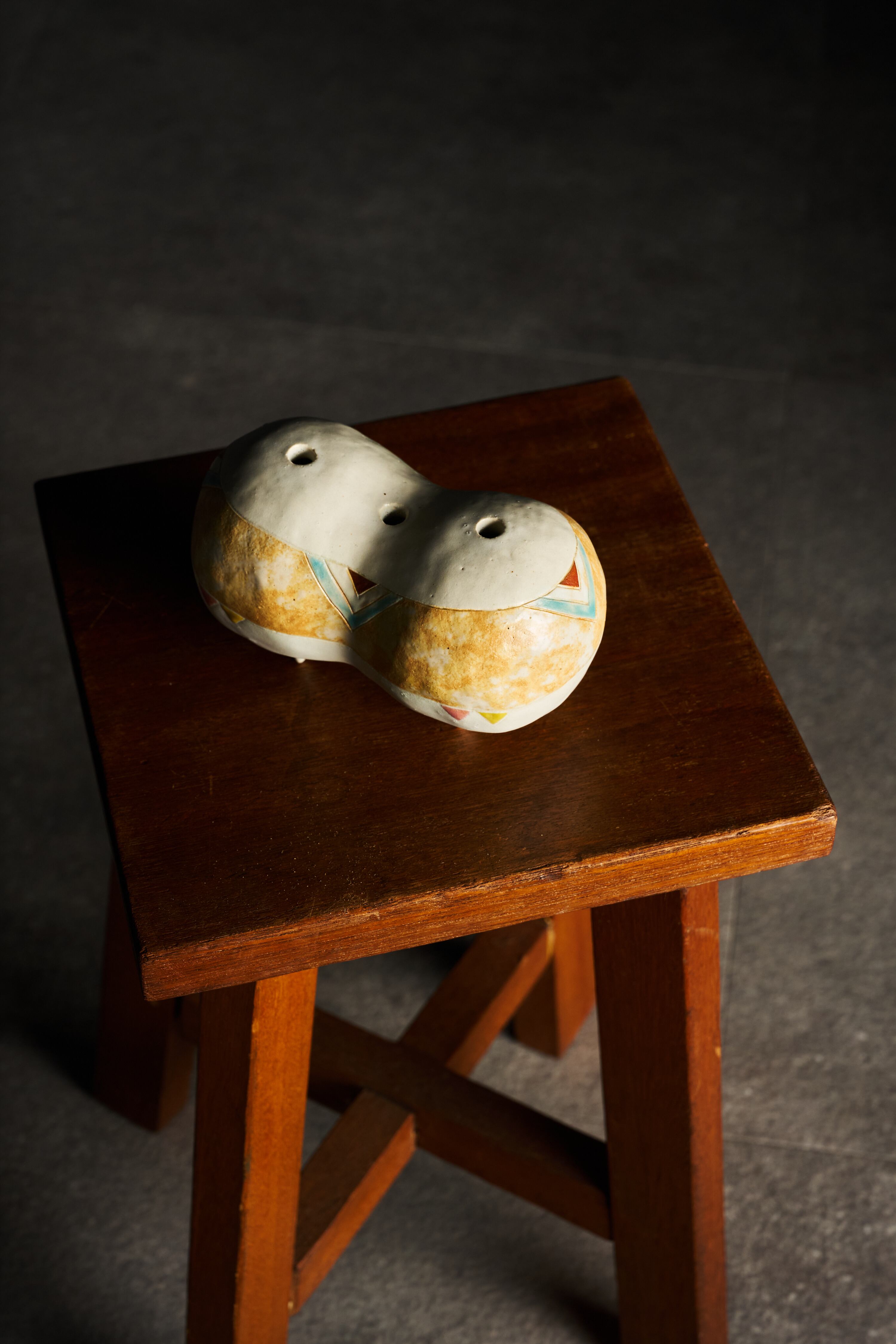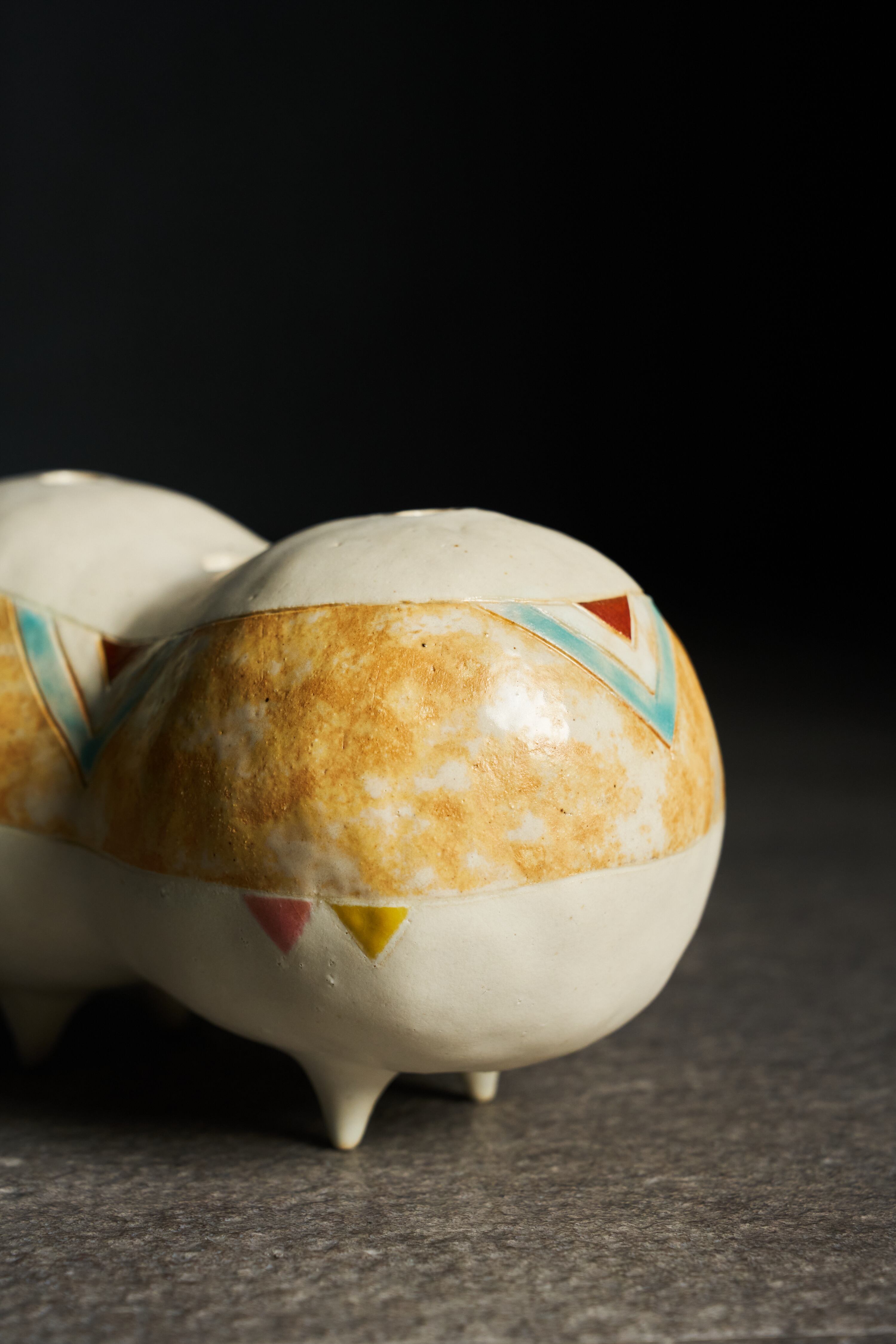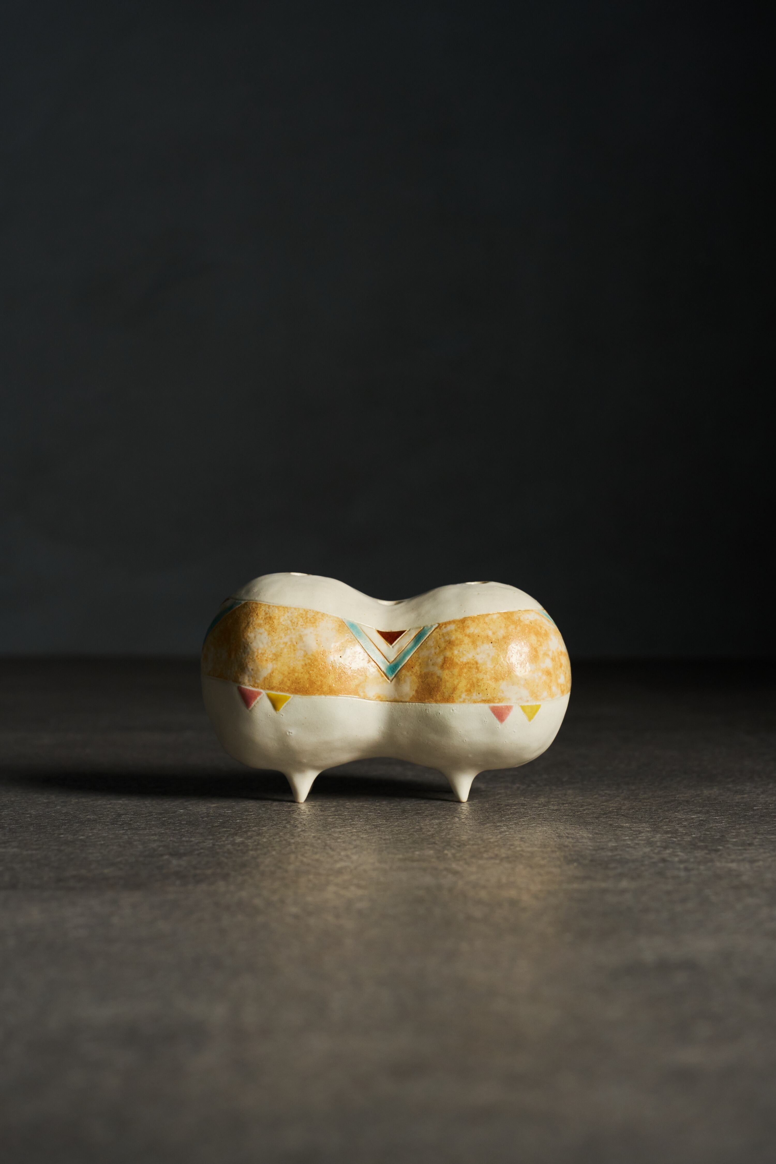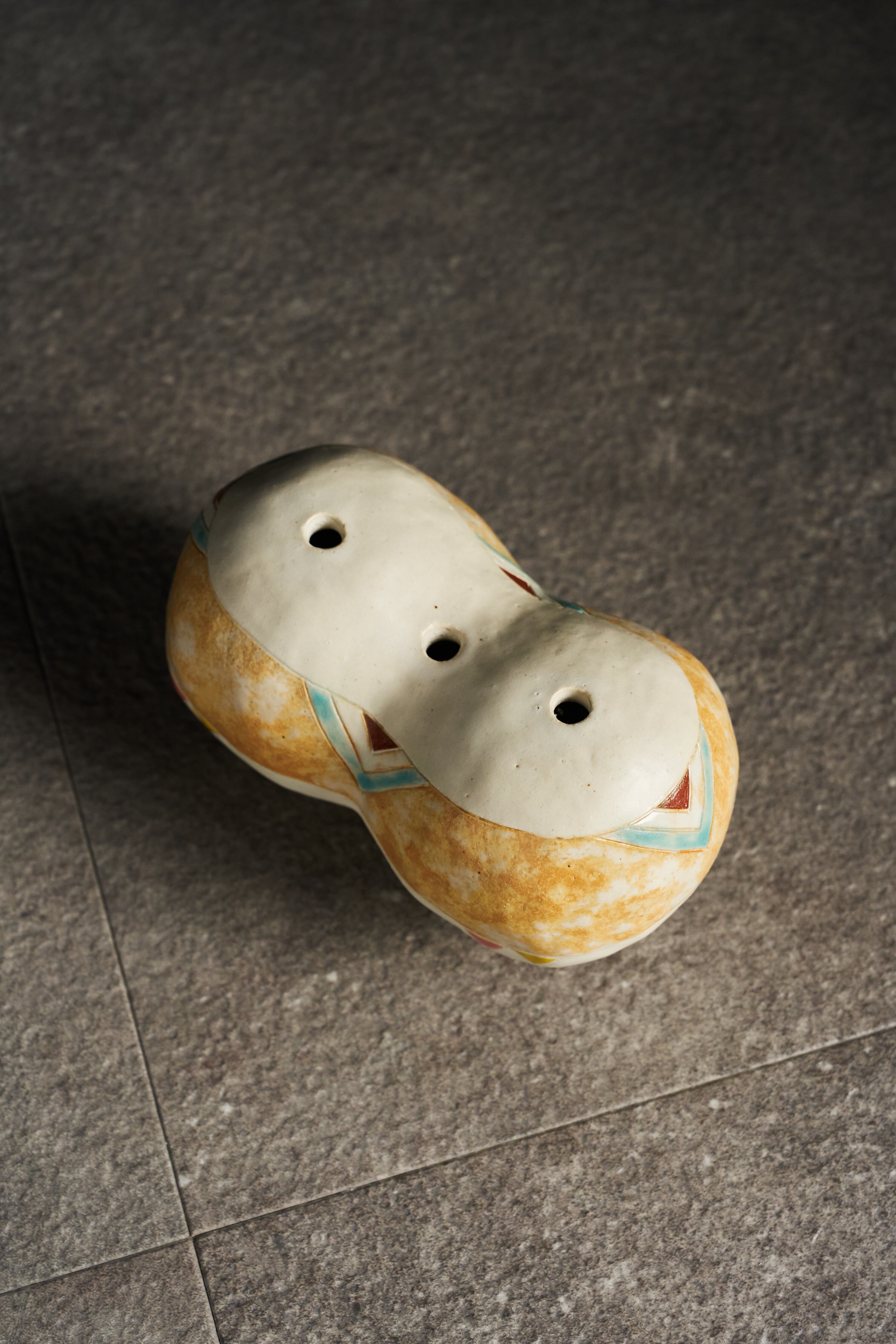 緻密にデザインされた表面の模様と、素材の持つ温もりが優しく調和し、観るたびに心に響く感情の変化をもたらします。飾る場所によって異なる印象を与え、様々な場面で心の豊かさを感じさせる一点です。また、上部に設けた三つの口に、花を生けていただくこともできます。日常の中で、ふと心を癒す存在となっていただければうれしいです。